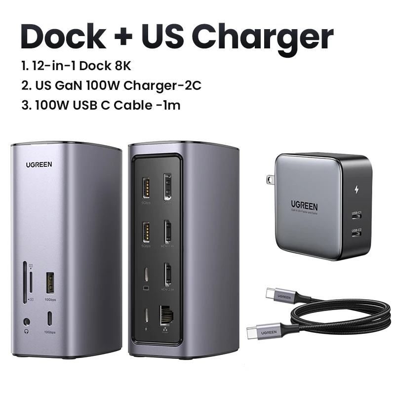 UGREEN Docking Station 12-IN-1 USB C to 8K HDMI DisplayPort ABCD Triple Display RJ45 PD100W Dock for 894679.2 |